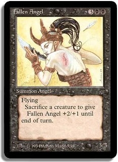 Flying. Sacrifice a creature to give Fallen Angel +2/+1 until end of turn.