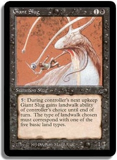 <5>: During controller's next upkeep Giant Slug gains landwalk ability of controller's choice until end of turn. The type of landwalk chosen must correspond with one of the five basic land types.