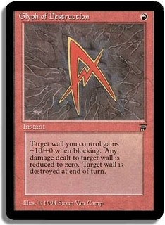 Target wall you control gains +10/+0 when blocking. Any damage dealt to target wall is reduced to zero. Target wall is destroyed at end of turn.