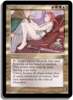 <T>: Target player discards one card from his or her hand at random. This power may only be used during your turn.