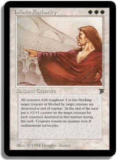 All creatures with toughness 3 or less blocking target creature or blocked by target creature are destroyed at end of combat. At the end of the turn put a +1/+1 counter on the target creature for each creature destroyed in this manner during the turn. Counters remain on creature even if enchantment leaves play.