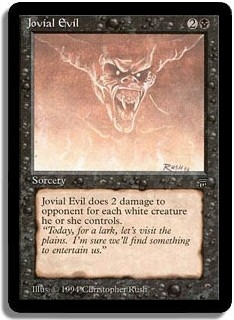 Jovial Evil does 2 damage to opponent for each white creature he or she controls.