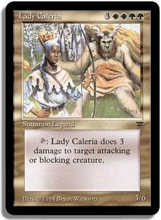 <T>: Lady Caleria does 3 damage to target attacking or blocking creature.