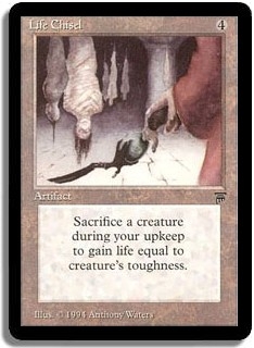 Sacrifice a creature during your upkeep to gain life equal to creature's toughness.
