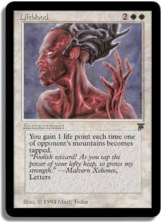 You gain 1 life point each time one of opponent's mountains becomes tapped.