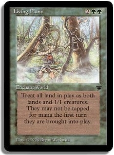 Treat all land in play as both lands and 1/1 creatures. They may not be tapped for mana the first turn they are brought into play.