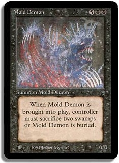 When Mold Demon is brought into play, controller must sacrifice two swamps or Mold Demon is buried.
