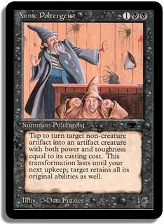 <T>: Target non-creature artifact becomes an artifact creature with power and toughness each equal to its casting cost. Target retains all original abilities. This change lasts until your next upkeep.