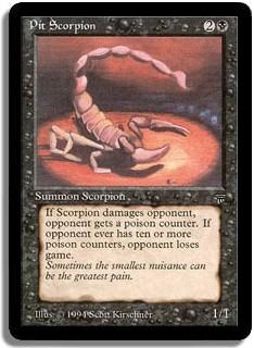 If Pit Scorpion damages a player, he or she gets a poison counter. If a player has ten or more poison counters, he or she loses the game.
