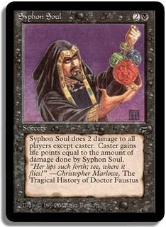 Syphon Soul does 2 damage to all players except caster. Caster gains life points equal to the amount of damage done by Syphon Soul.