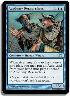 When Academy Researchers comes into play, you may put an Aura card from your hand into play attached to Academy Researchers.