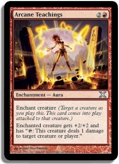 Enchant creature (Target a creature as you play this. This card comes into play attached to that creature.) Enchanted creature gets +2/+2 and has "T This creature deals 1 damage to target creature or player."