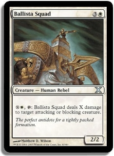 XW, T Ballista Squad deals X damage to target attacking or blocking creature.