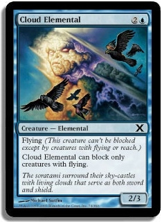 Flying (This creature can't be blocked except by creatures with flying or reach.) Cloud Elemental can block only creatures with flying.