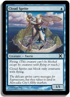 Flying (This creature can't be blocked except by creatures with flying or reach.) Cloud Sprite can block only creatures with flying.