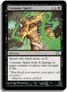 Spend only black mana on X. Consume Spirit deals X damage to target creature or player and you gain X life.