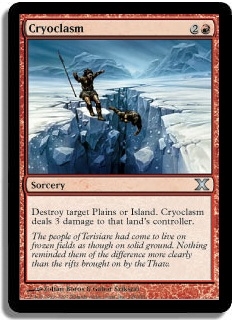 Destroy target Plains or Island. Cryoclasm deals 3 damage to that land's controller.