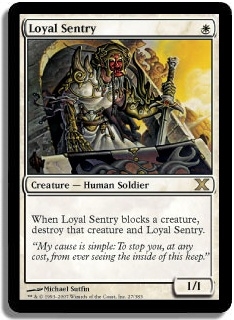 When Loyal Sentry blocks a creature, destroy that creature and Loyal Sentry.
