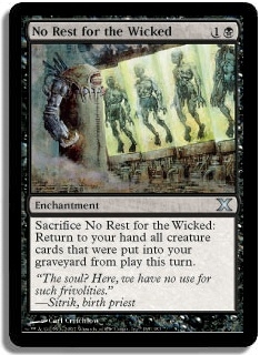 Sacrifice No Rest for the Wicked: Return to your hand all creature cards that were put into your graveyard from play this turn.