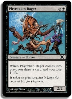 When Phyrexian Rager comes into play, you draw a card and you lose 1 life.