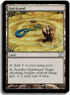 T Add 1 to your mana pool. T, Sacrifice Quicksand: Target attacking creature without flying gets -1/-2 until end of turn.