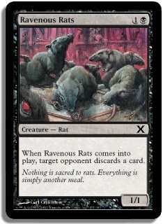 When Ravenous Rats comes into play, target opponent discards a card.