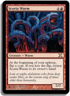 At the beginning of your upkeep, flip a coin. If you lose the flip, return Scoria Wurm to its owner's hand.