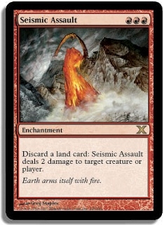 Discard a land card: Seismic Assault deals 2 damage to target creature or player.