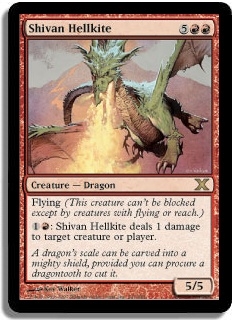 Flying (This creature can't be blocked except by creatures with flying or reach.) 1R: Shivan Hellkite deals 1 damage to target creature or player.