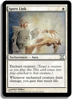 Enchant creature (Target a creature as you play this. This card comes into play attached to that creature.) Whenever enchanted creature deals damage, you gain that much life.
