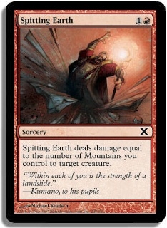 Spitting Earth deals damage equal to the number of Mountains you control to target creature.