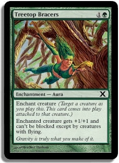 Enchant creature (Target a creature as you play this. This card comes into play attached to that creature.) Enchanted creature gets +1/+1 and can't be blocked except by creatures with flying.