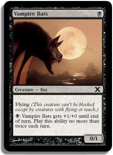 Flying (This creature can't be blocked except by creatures with flying or reach.) B: Vampire Bats gets +1/+0 until end of turn. Play this ability no more than twice each turn.