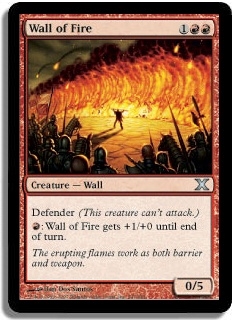 Defender (This creature can't attack.) R: Wall of Fire gets +1/+0 until end of turn.