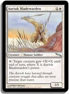 T: Target creature gets +X/+X until end of turn, where X is Auriok Bladewarden's power.