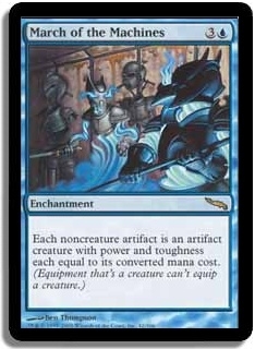 Each noncreature artifact is an artifact creature with power and toughness each equal to its converted mana cost. (Equipment that's a creature can't equip a creature.)