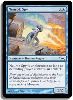 Neurok Spy is unblockable as long as defending player controls an artifact.