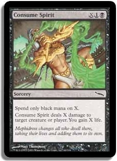 Spend only black mana on X. Consume Spirit deals X damage to target creature or player. You gain X life.