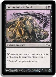 Whenever enchanted creature attacks or blocks, its controller loses 3 life.
