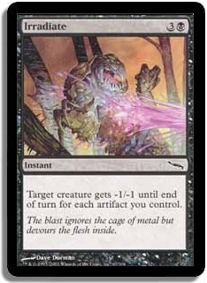 Target creature gets -1/-1 until end of turn for each artifact you control.