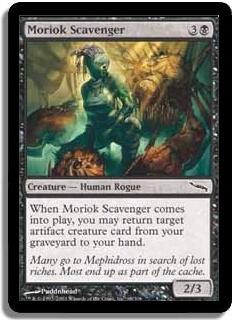 When Moriok Scavenger comes into play, you may return target artifact creature card from your graveyard to your hand.