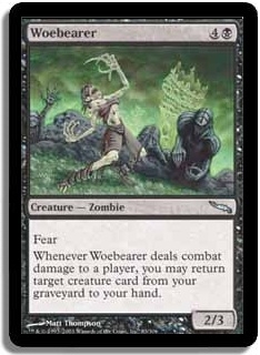 Fear Whenever Woebearer deals combat damage to a player, you may return target creature card from your graveyard to your hand.