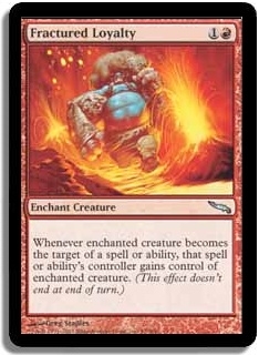 Whenever enchanted creature becomes the target of a spell or ability, that spell or ability's controller gains control of enchanted creature. (This effect doesn't end at end of turn.)