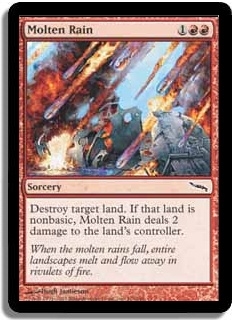 Destroy target land. If that land is nonbasic, Molten Rain deals 2 damage to the land's controller.