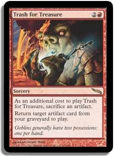 As an additional cost to play Trash for Treasure, sacrifice an artifact. Return target artifact card from your graveyard to play.
