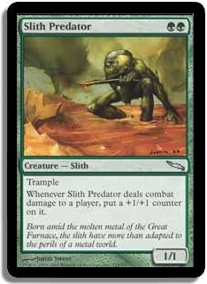 Trample Whenever Slith Predator deals combat damage to a player, put a +1/+1 counter on it.