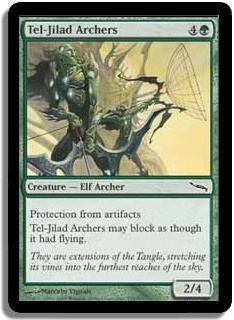 Protection from artifacts Tel-Jilad Archers may block as though it had flying.