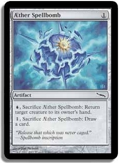U, Sacrifice Aether Spellbomb: Return target creature to its owner's hand. 1, Sacrifice Aether Spellbomb: Draw a card.