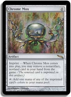 Imprint - When Chrome Mox comes into play, you may remove a nonartifact, nonland card in your hand from the game. (The removed card is imprinted on this artifact.) T: Add one mana of any of the imprinted card's colors to your mana pool.