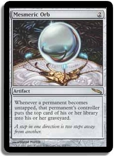 Whenever a permanent becomes untapped, that permanent's controller puts the top card of his or her library into his or her graveyard.